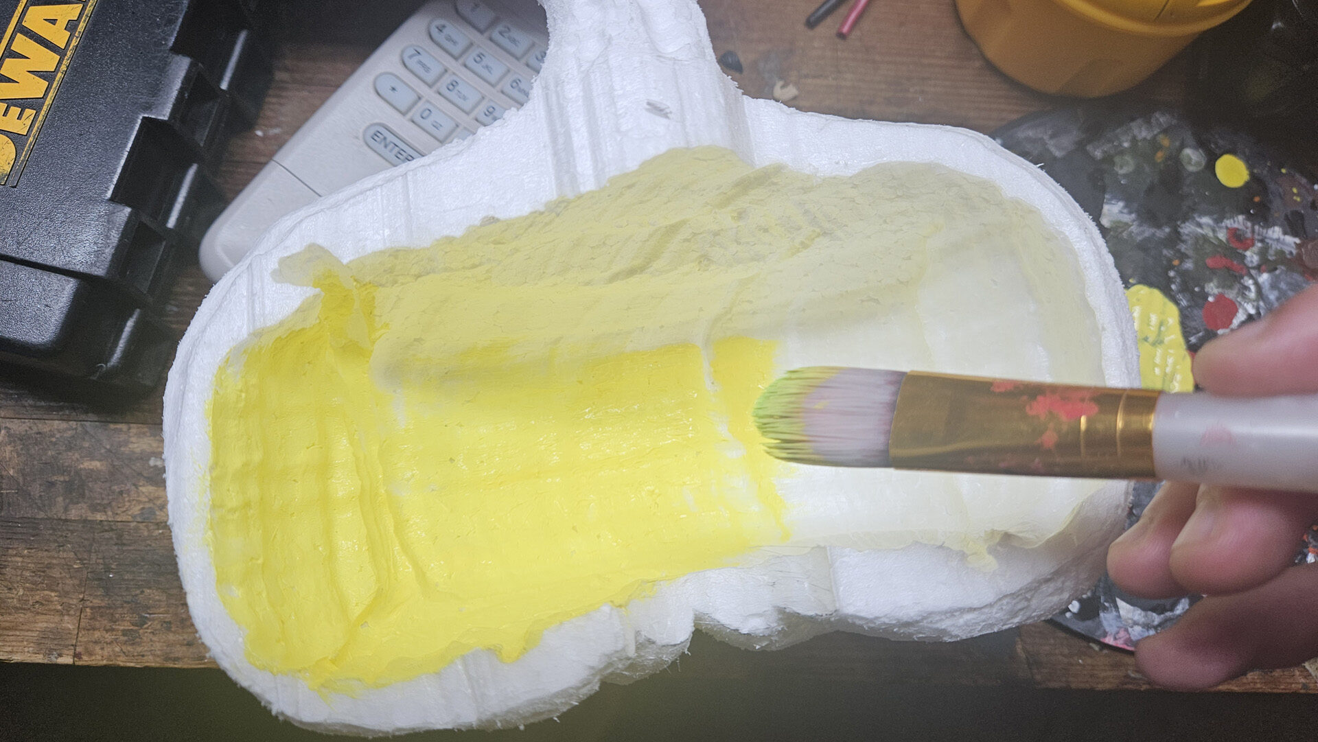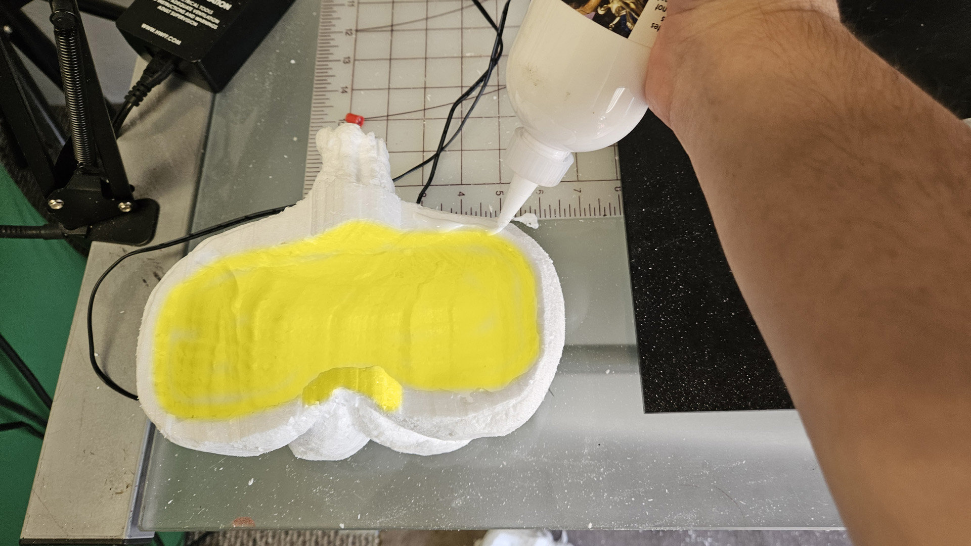 Glue the two halves together with StyroGoo or Foam Fusion. Wrap tightly with tape and let the glue dry overnight.