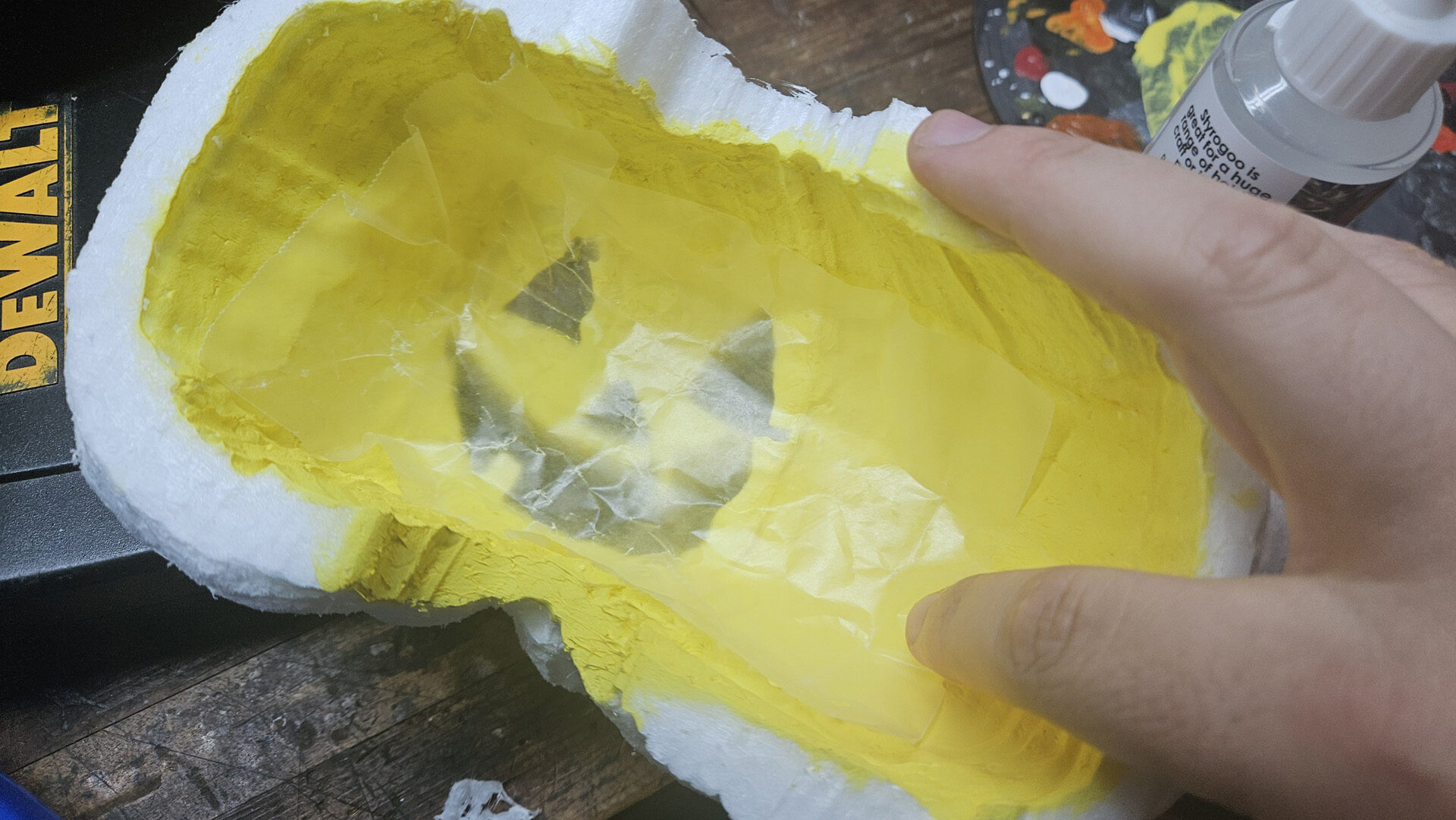 Once the paint is dry, glue a sheet of wax paper behind the face with StyroGoo (Optional if you want to hide the inside).