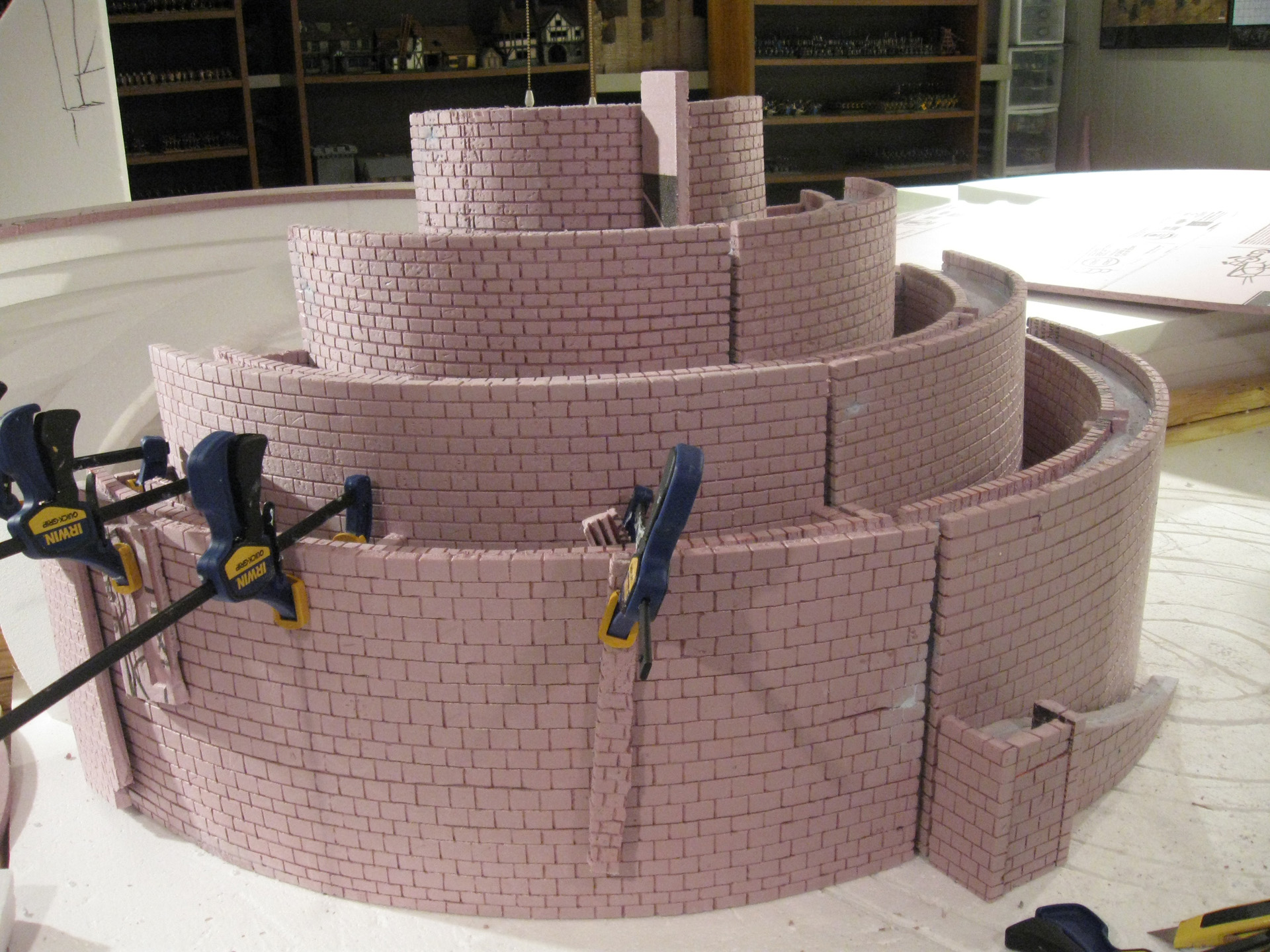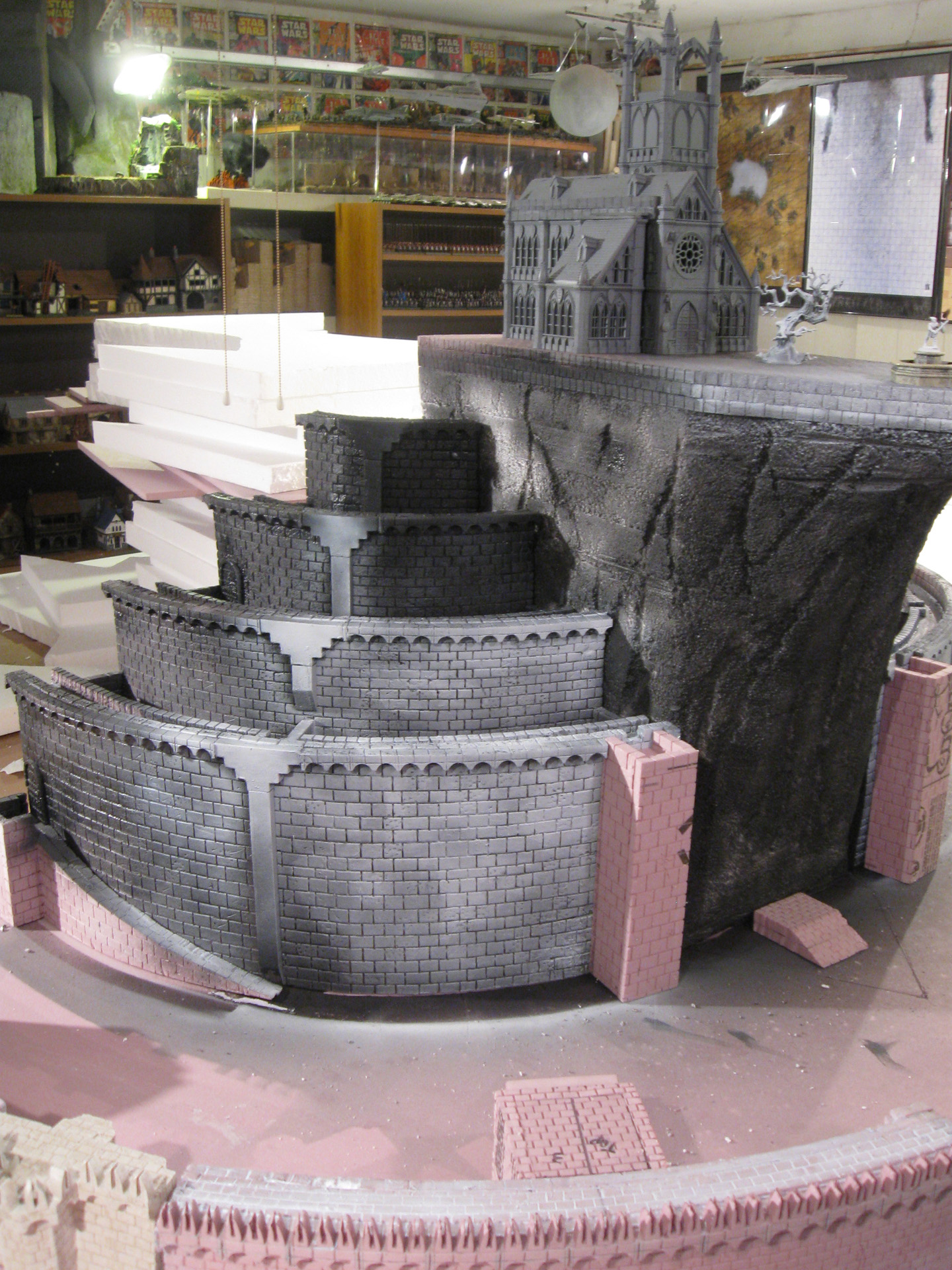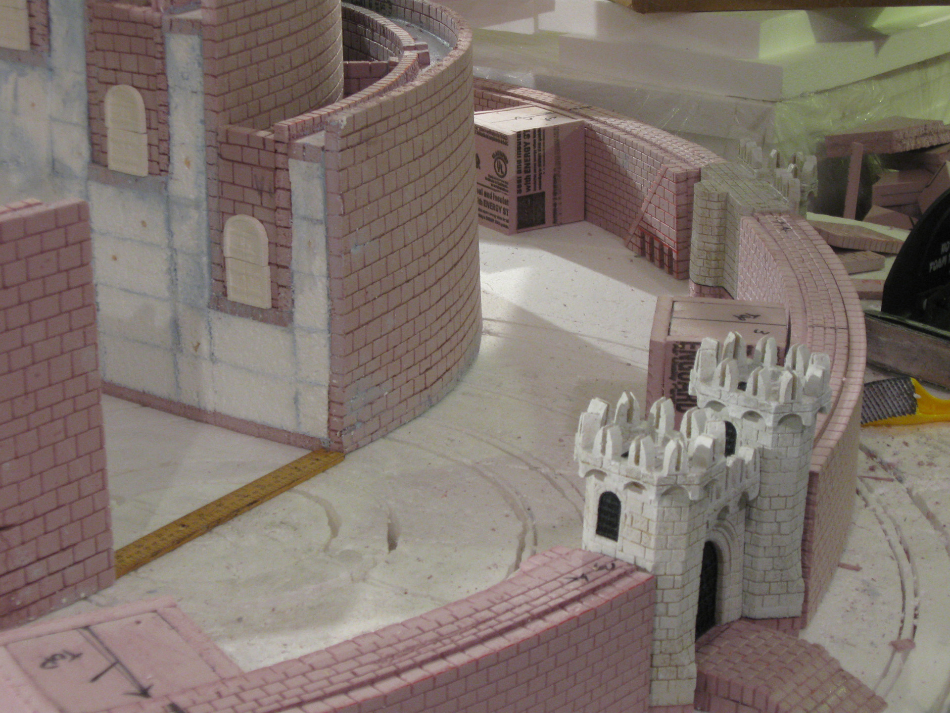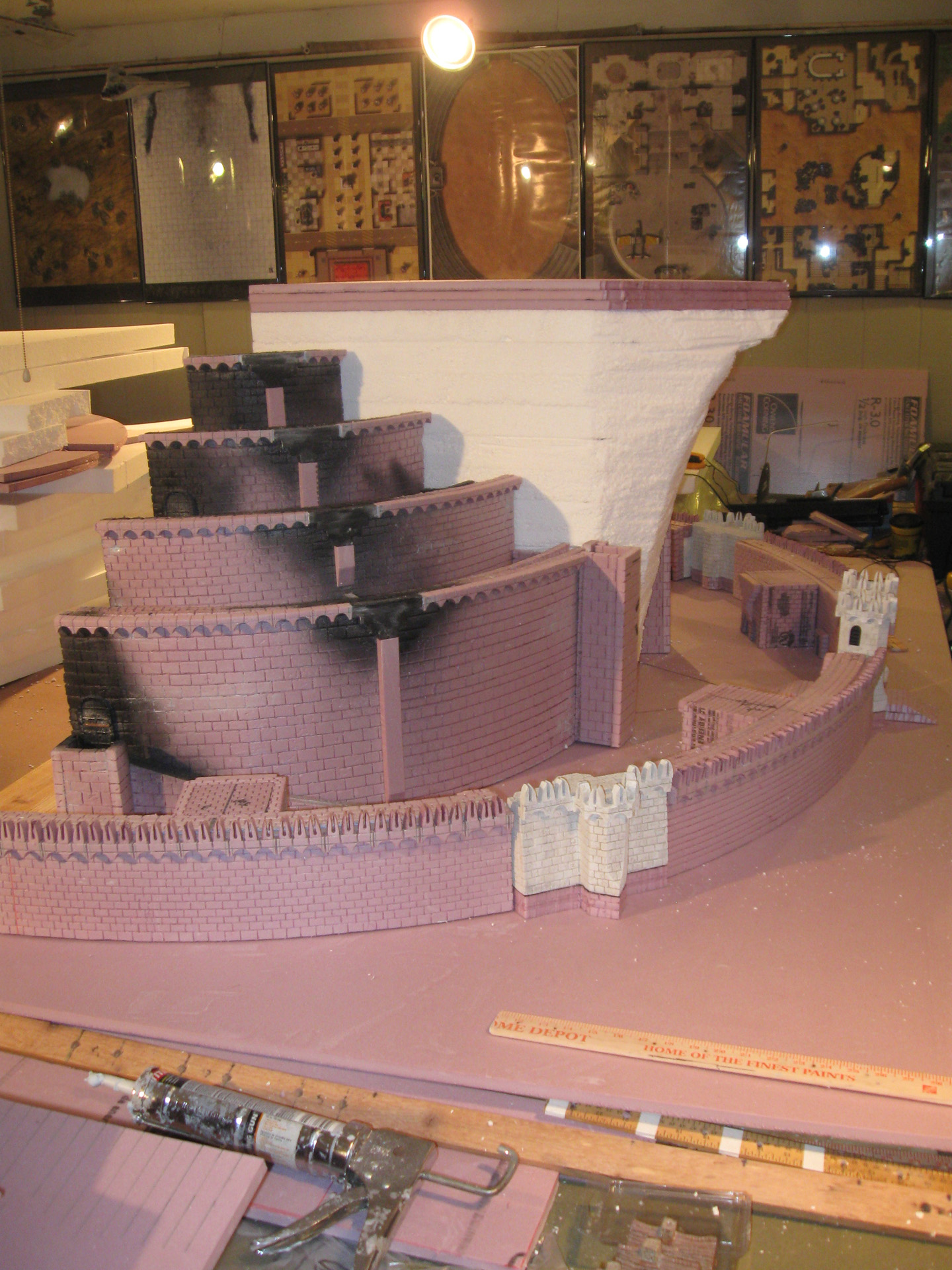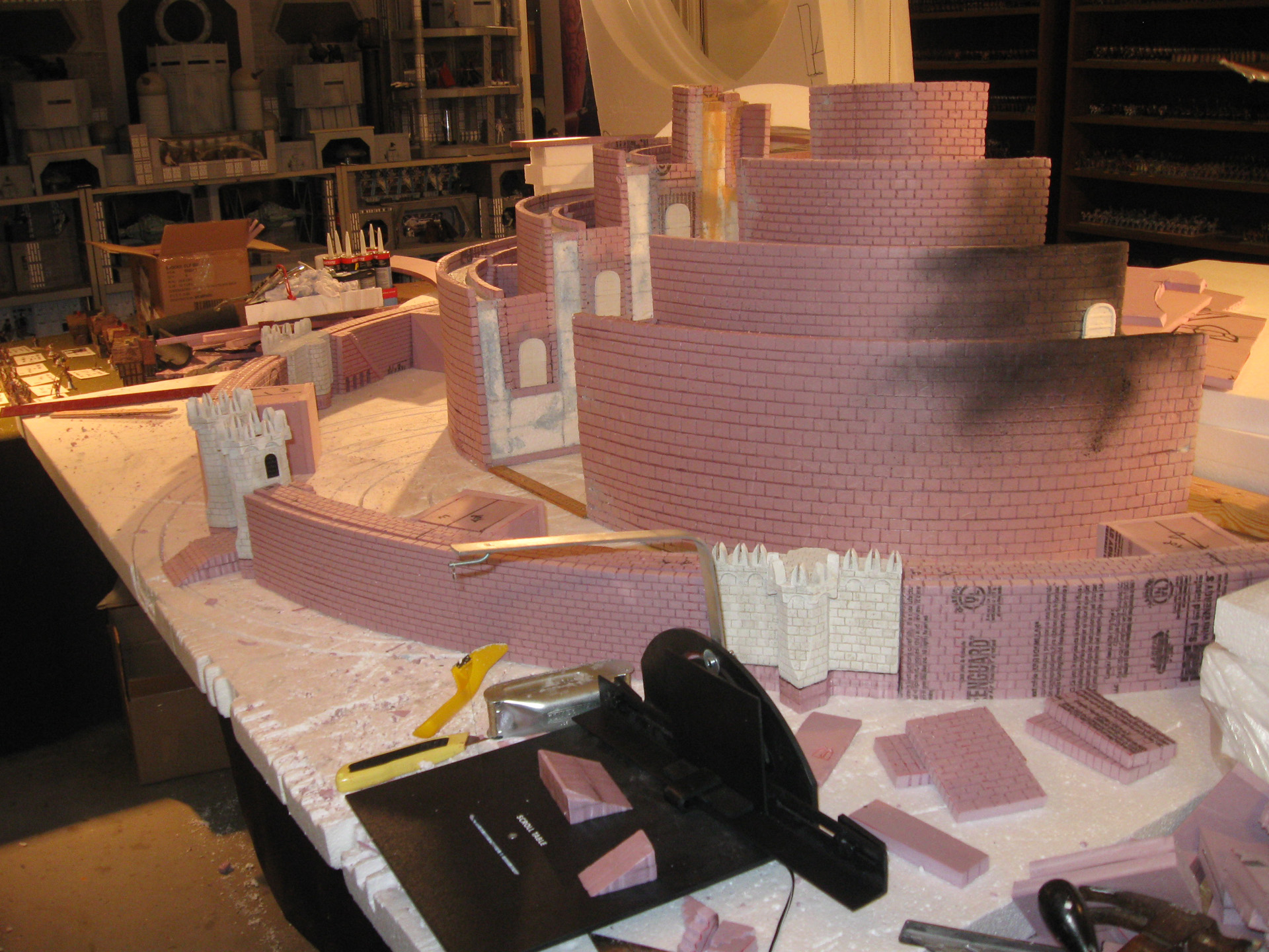 Started on the outer walls, and now I’m almost done, so I should have the whole structure completed this weekend, and will be working on the terrain soon. Of course last is the citadel. The Scroll Table came in real handy cutting out stuff. It’s a great table!