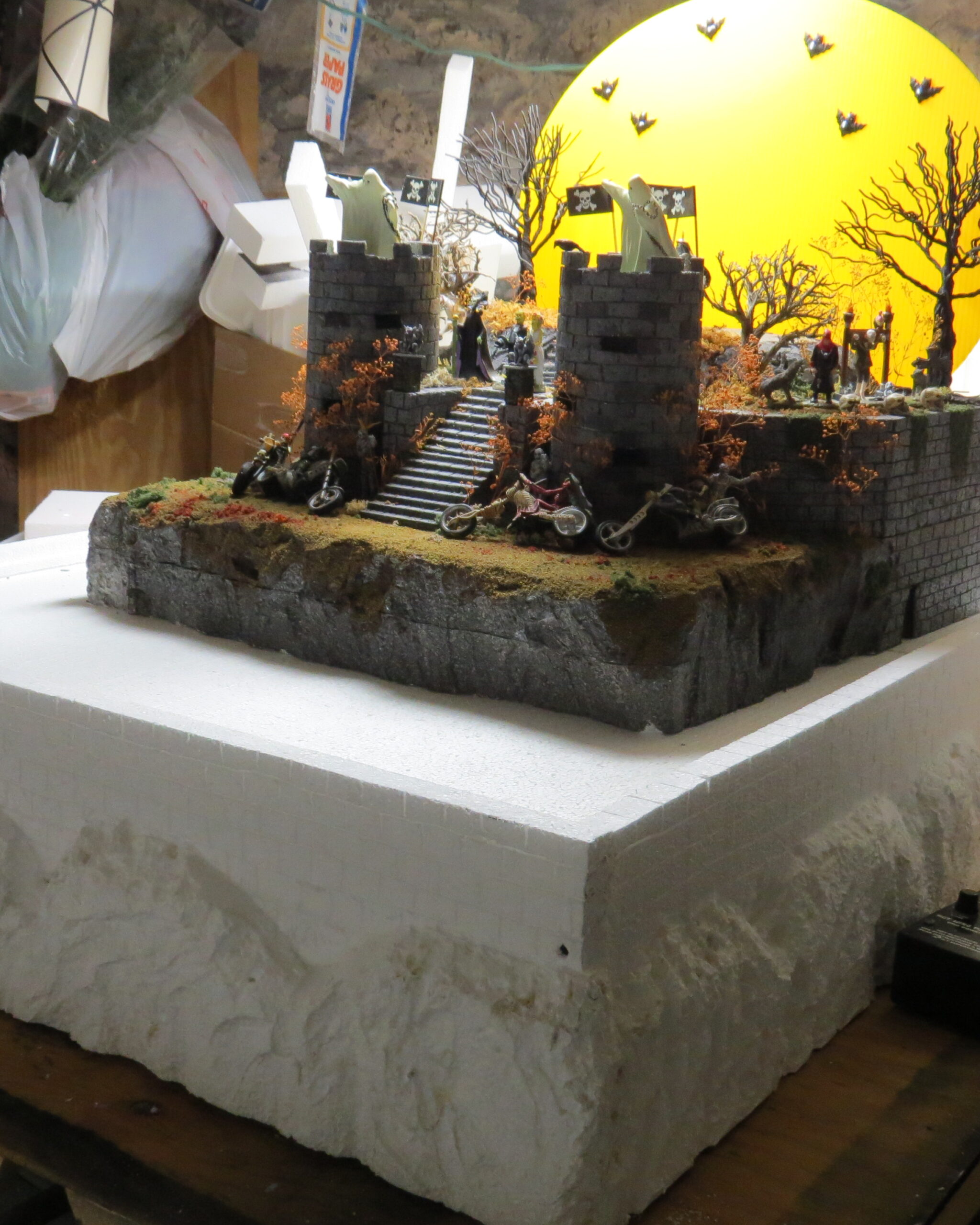 This particular display took me about 40 hours in all. Some of that time is trying to design it in my head. I usually don’t make up a drawing I just design as I go, making a few changes along the way if something doesn’t look right. Getting and using the Hot Wire Foam Factory Tools has made display building much easier to shape or cut the Styrofoam the way I want it to look. I used the Hot Knife, Freehand Router and the Sculpting Tool. I also used the Industrial Hot Knife to make some of the bigger cuts in the 2 inch Foam.